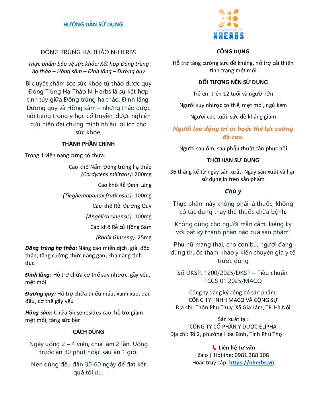 Đông trùng hạ thảo – N-HERBS – Thực phẩm bảo vệ sức khỏe
